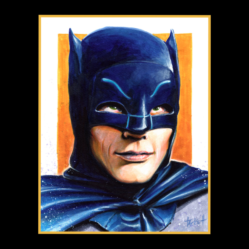 Step into the Technicolor world of Gotham City with this stunning portrait of Adam West as Batman from the beloved 1966 TV series. Crafted by award-winning artist Billy Tackett, this unique artwork showcases the legendary Caped Crusader in all his heroic glory. Measuring 11"x14", this portrait is meticulously painted with a blend of markers, acrylics, and colored pencils on high-quality watercolor paper.