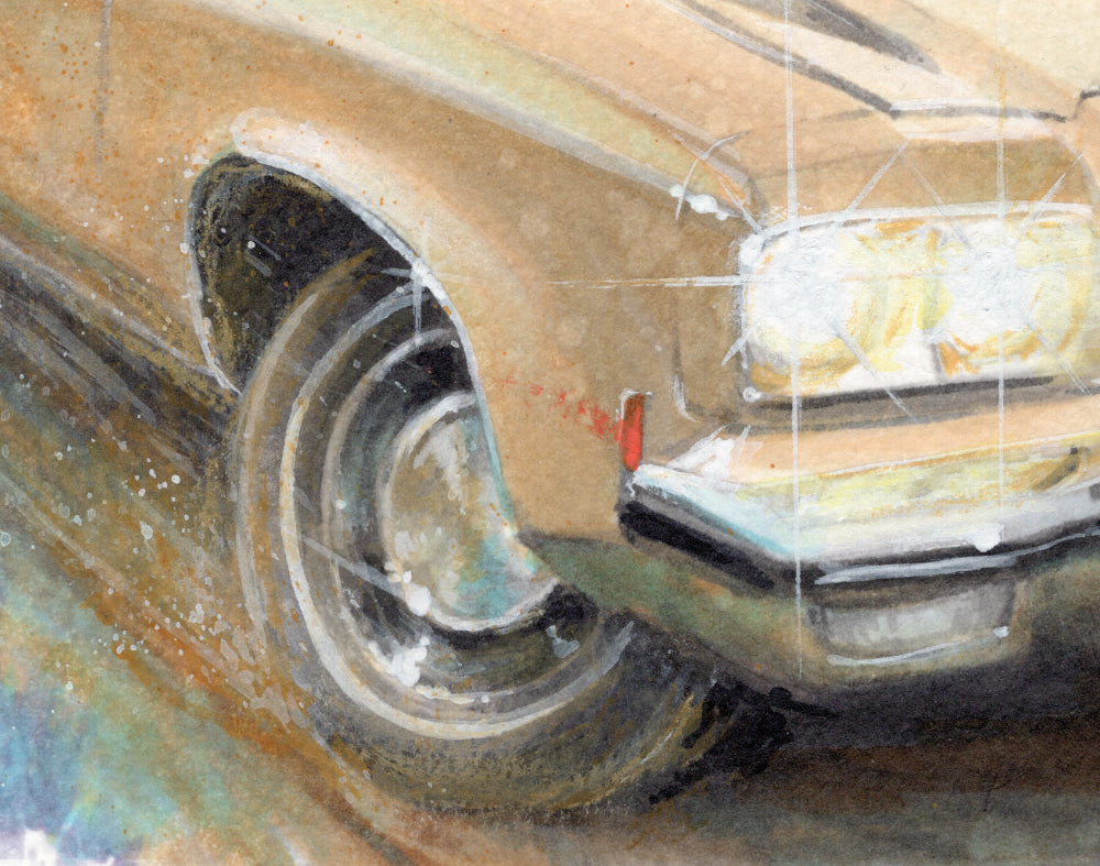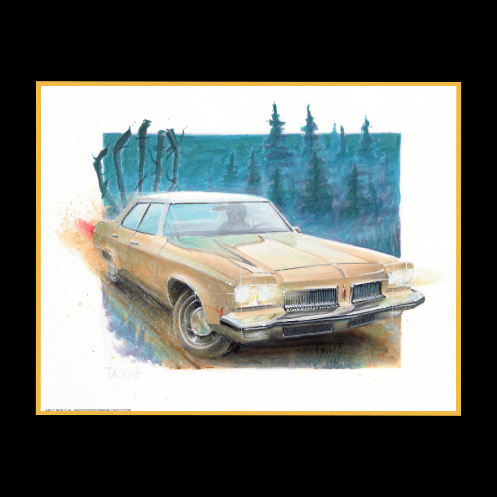 Don't let this opportunity to own a piece of cinematic horror history pass you by. Secure your painting of the 1973 Oldsmobile Delta 88 from "The Evil Dead" today and let the terror take the wheel!