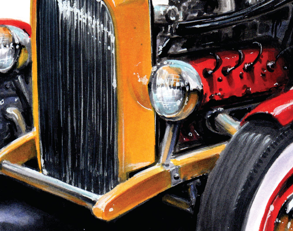 This artwork encapsulates the essence of the iconic era, featuring the classic car that became synonymous with the show's adventures and the carefree spirit of the Fifties. Each brushstroke meticulously details the vintage design, vibrant color, and undeniable charisma of this legendary vehicle, transporting you to the golden days of American nostalgia.