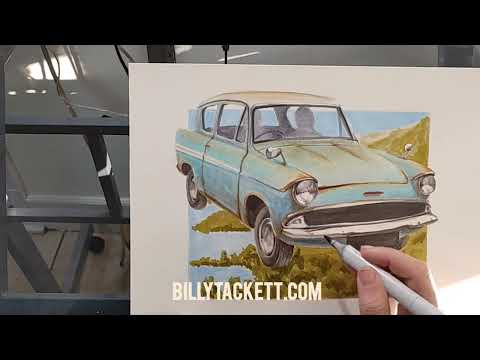 The Flying Ford Anglia from the magical world of Harry Potter, is now captured in a whimsical and spellbinding painting that brings to life the wonder and adventure of J.K. Rowling's beloved series.