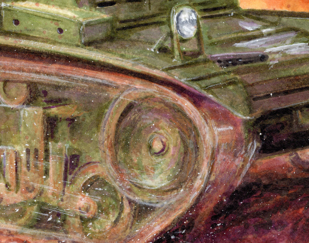 Introducing a remarkable work of art that brings to life the iconic M3 Stuart Light Tank from DC Comics' "The Haunted Tank." This painting captures the essence of military history and comic book heroics in one compelling masterpiece.