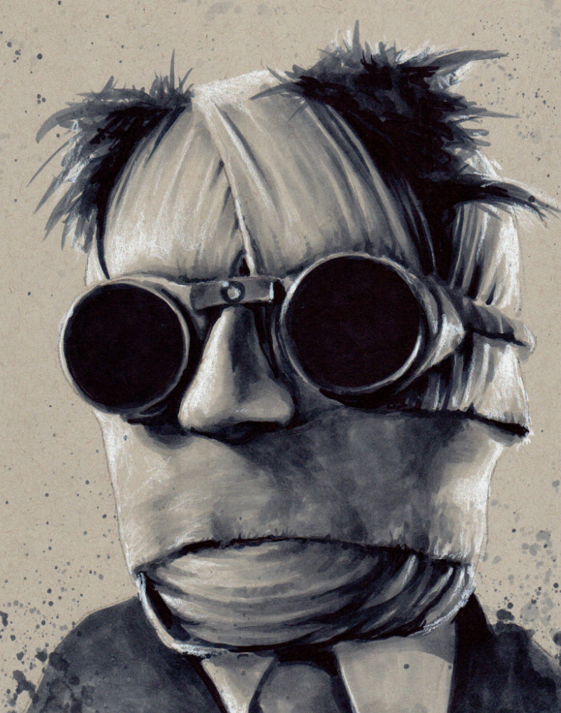 Tackett's unique artistry brings Claude Rains' portrayal to life, capturing the mystery and intrigue that define The Invisible Man. The black and white composition adds a timeless quality to the portrayal, emphasizing the character's unseen presence and the artistry of the film.