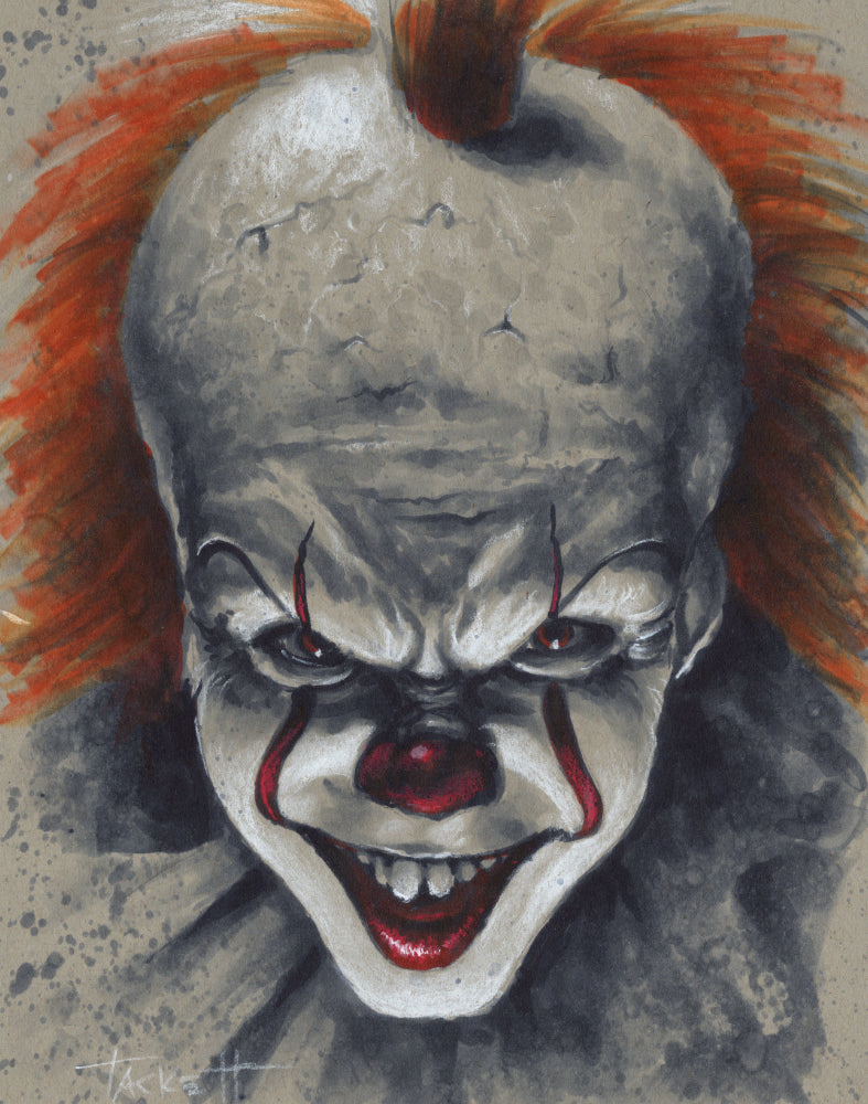Dive into the spine-tingling world of modern horror with Billy's captivating painting of Pennywise from the chilling remake of the film "It."