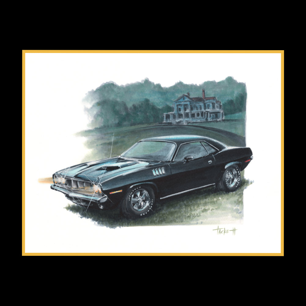 Introducing a stunning artistic tribute to a cinematic classic, your painting of the 1971 Plymouth 'Cuda from the film "Phantasm."