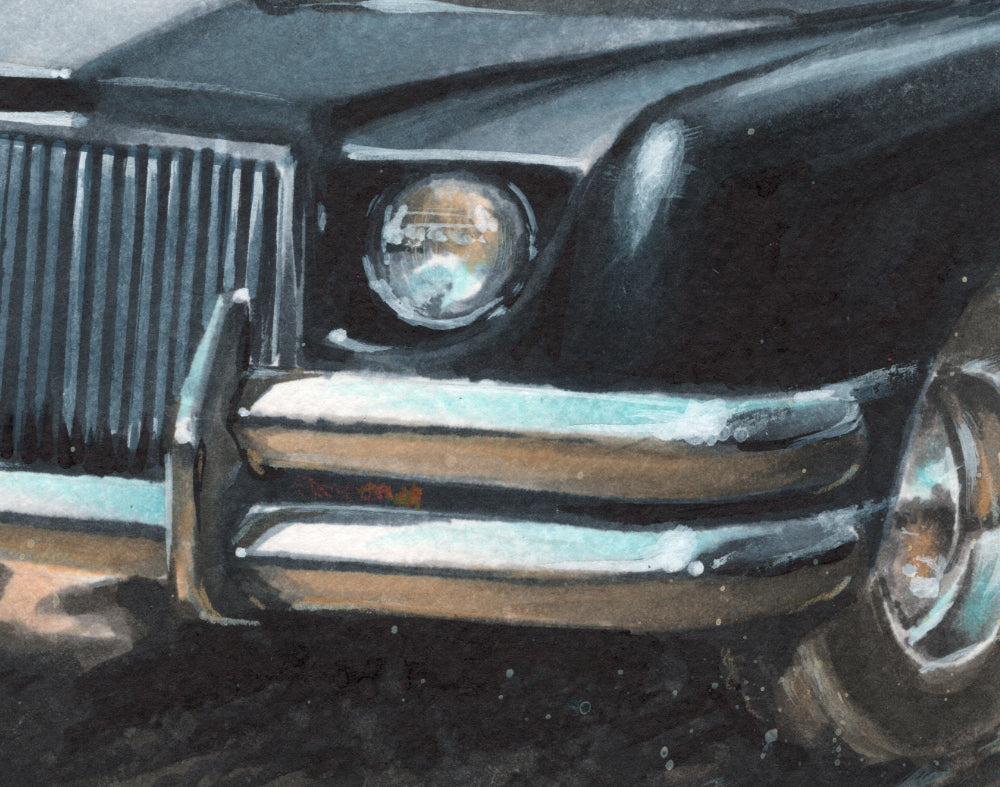 This artwork pays homage to a unique and terrifying vehicle, immortalized by George Barris' unmistakable design. Every brushstroke meticulously captures the car's ominous presence, dark charisma, and haunting aesthetics, plunging you into the heart-pounding world of supernatural horror.